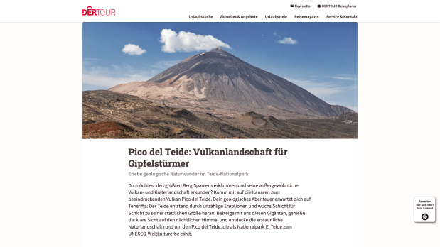 DERTOUR-Landingpage „Pico del Teide: Vulkanlandschaft für Gipfelstürmer“